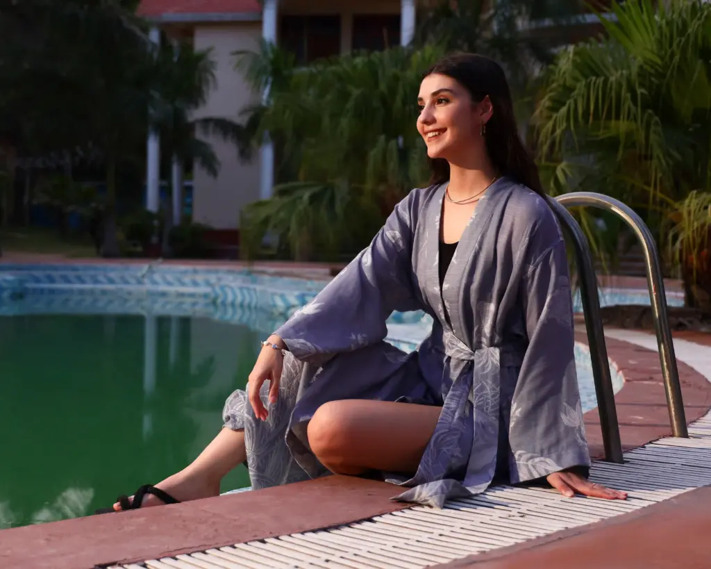Experience the perfect harmony of luxury and comfort with our exclusive cashmere and bamboo silk blend. This fabric is incredibly soft, feather-light, and breathable, with a silky smooth finish that drapes beautifully. Designed to make you feel like a goddess, it offers all-day comfort with an effortless touch of elegance.