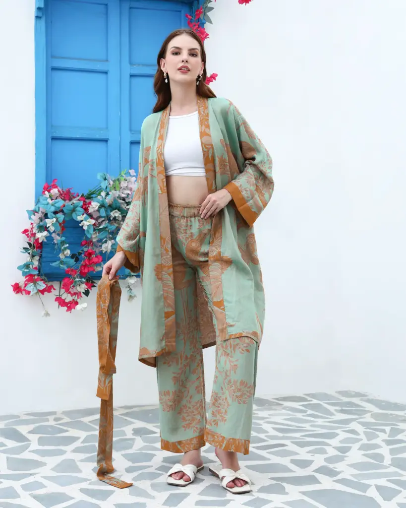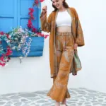 • Relaxed fit, stretchable pant & kaftan, comes with belt