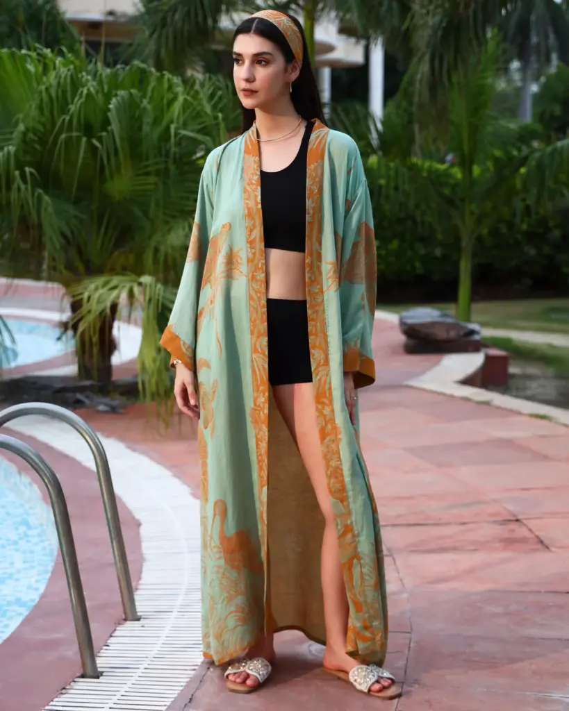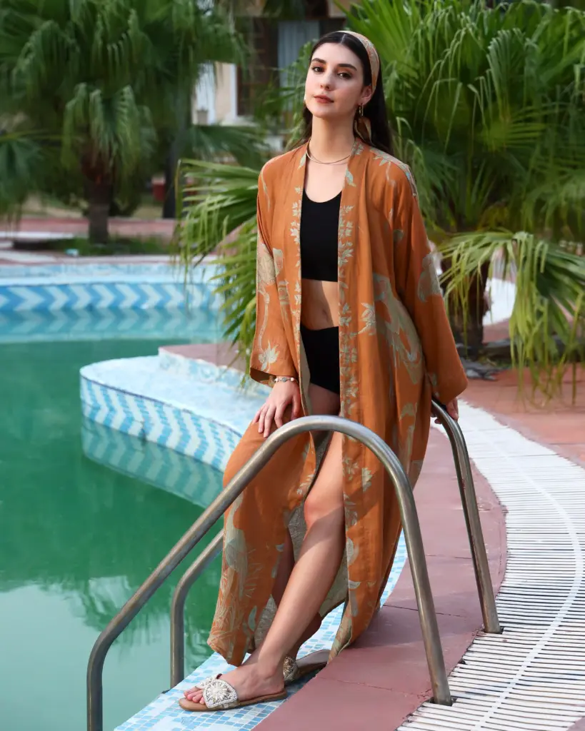 Experience the perfect harmony of luxury and comfort with our exclusive cashmere and bamboo silk blend. This fabric is incredibly soft, feather-light, and breathable, with a silky smooth finish that drapes beautifully. Designed to make you feel like a goddess, it offers all-day comfort with an effortless touch of elegance.