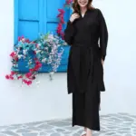 • Relaxed fit, stretchable pant & kaftan, comes with belt