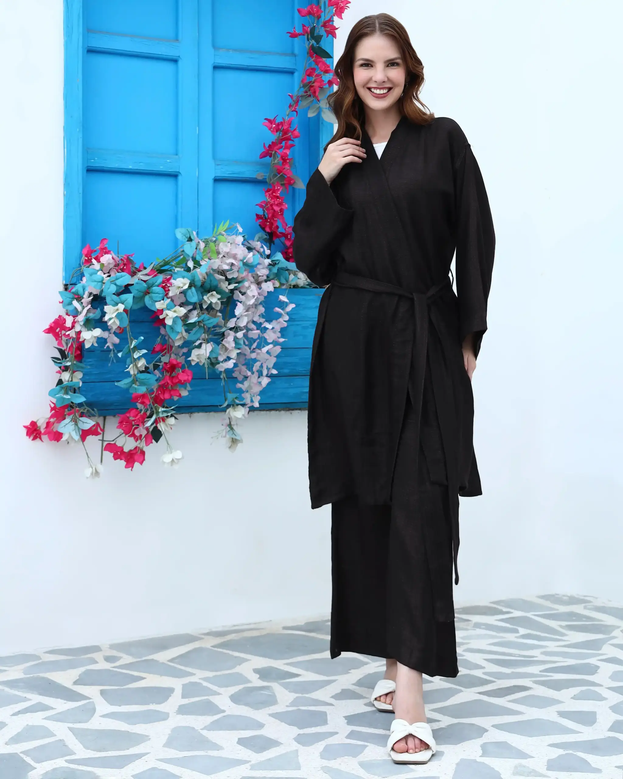 Experience the perfect harmony of luxury and comfort with our exclusive cashmere and bamboo silk blend. This fabric is incredibly soft, feather-light, and breathable, with a silky smooth finish that drapes beautifully. Designed to make you feel like a goddess, it offers all-day comfort with an effortless touch of elegance.