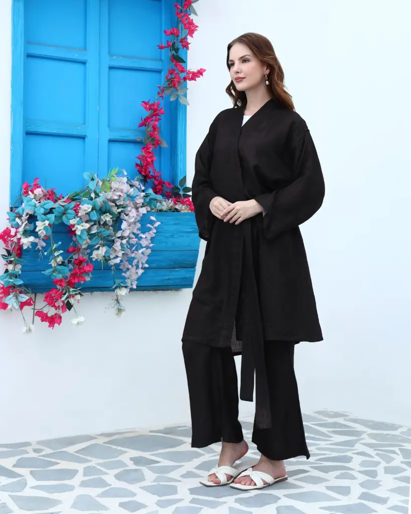 Experience the perfect harmony of luxury and comfort with our exclusive cashmere and bamboo silk blend. This fabric is incredibly soft, feather-light, and breathable, with a silky smooth finish that drapes beautifully. Designed to make you feel like a goddess, it offers all-day comfort with an effortless touch of elegance.