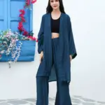 • Relaxed fit, stretchable pant & kaftan, comes with belt